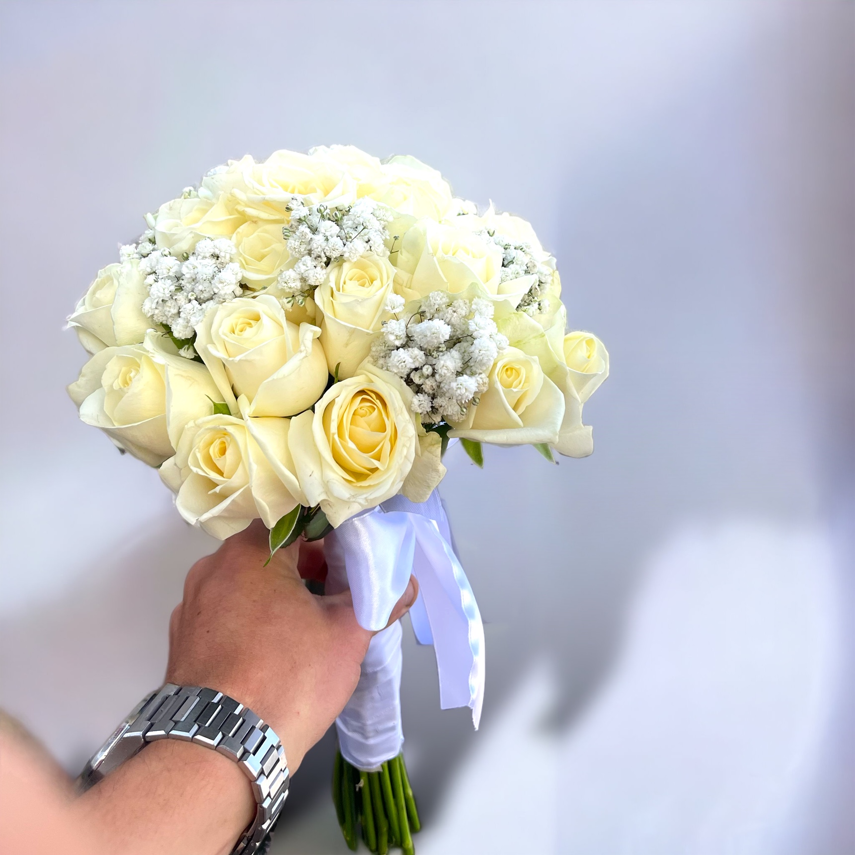זר כלה ורדים לבנים עם כדורי גיבסניות